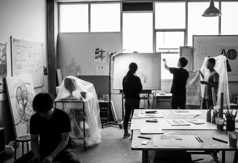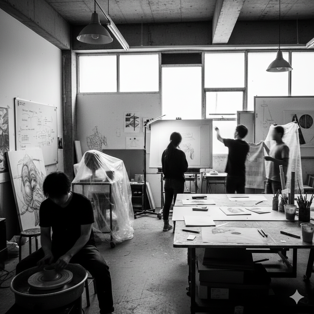 Workshops at PARTICLE HUB function as laboratories for material exploration and methodological development. We create experimental environments where artists can test media, refine techniques, and explore interdisciplinary approaches — from conventional practices to emerging technologies. Our focus is not merely on final outcomes, but on the process of discovery and the development of an authentic visual language. In this space, experimentation is embraced as an essential part of artistic growth.